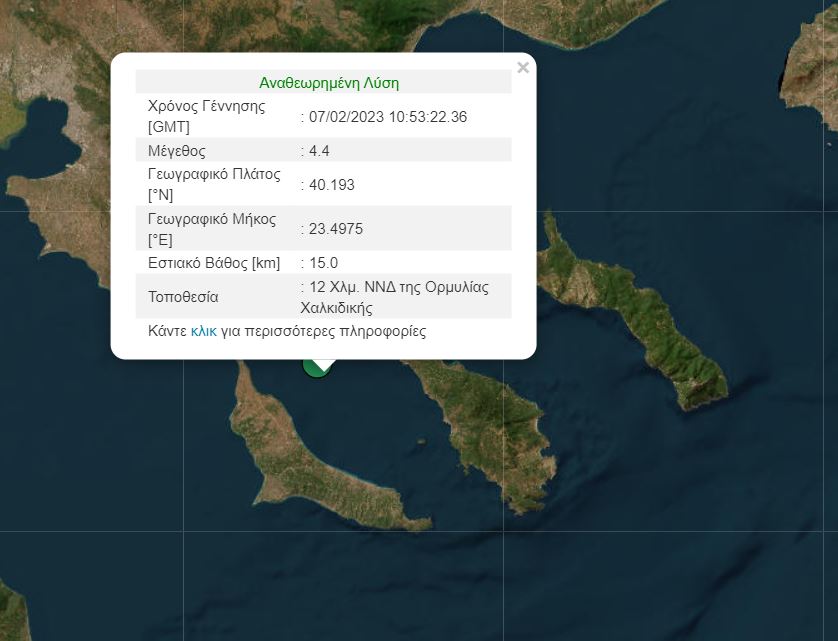 Το επίκεντρο του σεισμού εκτιμάται στα 12 χιλιόμετρα Νότια, Νοτιοδυτικά της Ορμυλίας, με εστιακό βάθος 15 χιλιομέτρων.