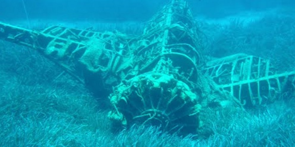 Μέσα λοιπόν, στο βυθό βρίσκεται ένα πολεμικό αεροπλάνου του Β’ Παγκοσμίου Πολέμου, σχεδόν στα 10 μέτρα βάθος και είναι αρκετά εύκολο να εντοπίσει κανείς.