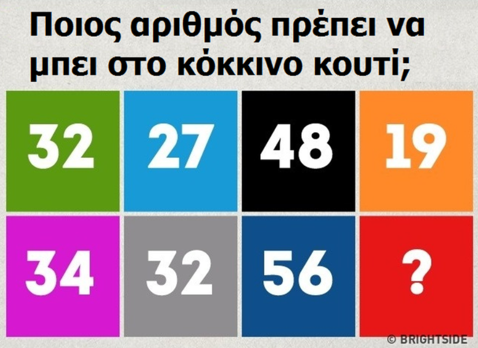 Στο κόκκινο κουτί, σύμφωνα με την ακολουθία που υπάρχει, θα πρέπει να συμπληρωθεί ένας αριθμός. Μπορείτε να βρείτε ποιος είναι αυτός, χωρίς όμως να… κλέψετε και να δείτε τη λύση;