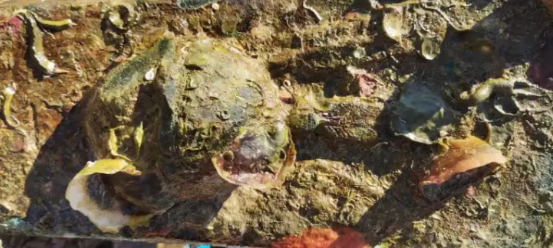 Το ρύγχος είναι καλυμμένο με θαλάσσια οργανική ύλη που κάνει αδύνατη την αναγνώριση των επιγραφών στην επιφάνειά του. Φωτογραφία: Διεύθυνση Θαλάσσιας Διαχείρισης Ιταλίας