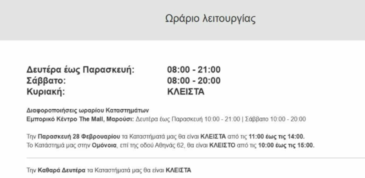 Στην αυριανή πανελλαδική κινητοποίηση για τη συμπλήρωση δύο ετών από την τραγωδία στα Τέμπη συμμετέχουν και μεγάλες αλυσίδες σούπερ μάρκετ, αναστέλλοντας τη λειτουργία τους για τρεις ώρες. Τα καταστήματα των ΑΒ Βασιλόπουλος, My Market και Σκλαβενίτης θα παραμείνουν κλειστά από τις 11:00 έως τις 14:00, σε ένδειξη πένθους για τα 57 θύματα και στήριξης στις πορείες διαμαρτυρίας.,