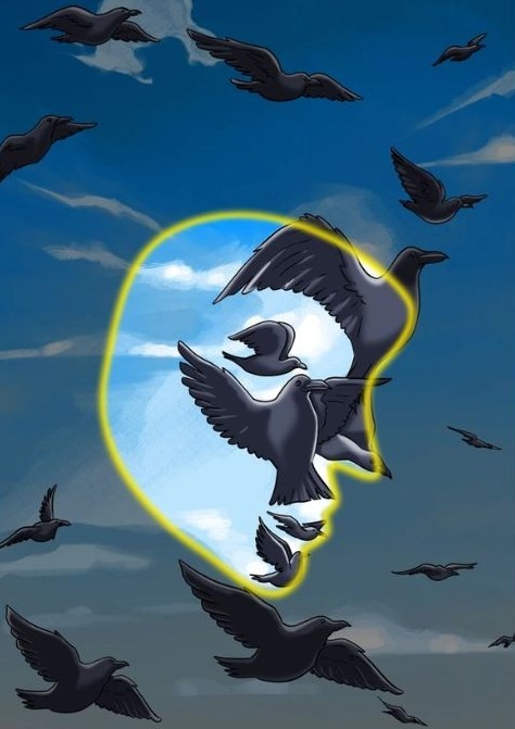 Στην παρακάτω εικόνα βλέπετε πουλιά να πετούν. Κάπου κρύβεται το πρόσωπο ενός ανθρώπου. Μπορείτε να το βρείτε σε 6 δευτερόλεπτα;
