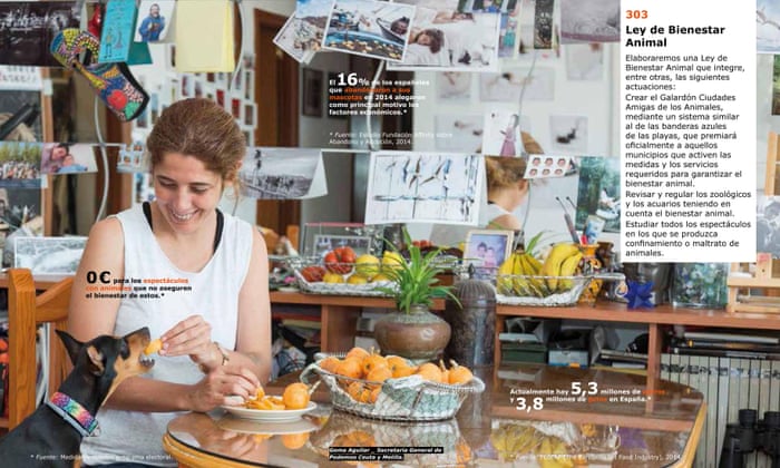 Όπως σημειώνει ο Guardian το κόμμα των Podemos ελπίζει για το "πιο πολυδιαβασμένο μανιφέστο που υπήρξε ποτέ" με τους υποψήφιους να απεικονίζονται σε σπίτια ποτίζοντας φυτά και δίνοντας τροφή σε ψάρια