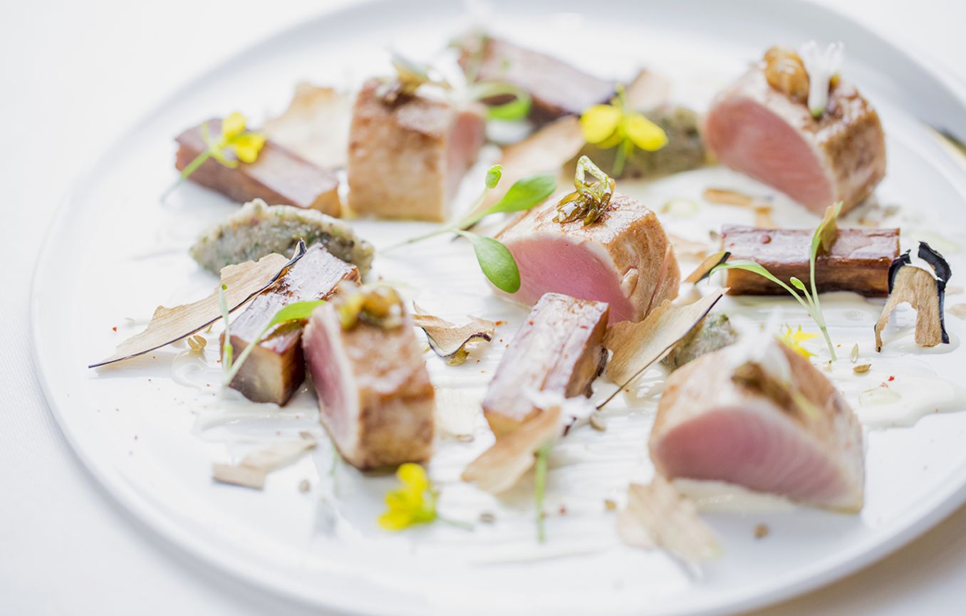 Στην κουζίνα βρίσκεται ο σεφ Franck Giovannini, ο οποίος μαθήτευσε στον Violier και εξακολουθεί να διατηρεί το στυλ του σε ένα μενού γευσιγνωσίας από 11 πιάτα, μεταξύ των οποίων και το καβούρι καρυκευμένο με πικάντικο βασιλικό ή μοβ αγκινάρες.
