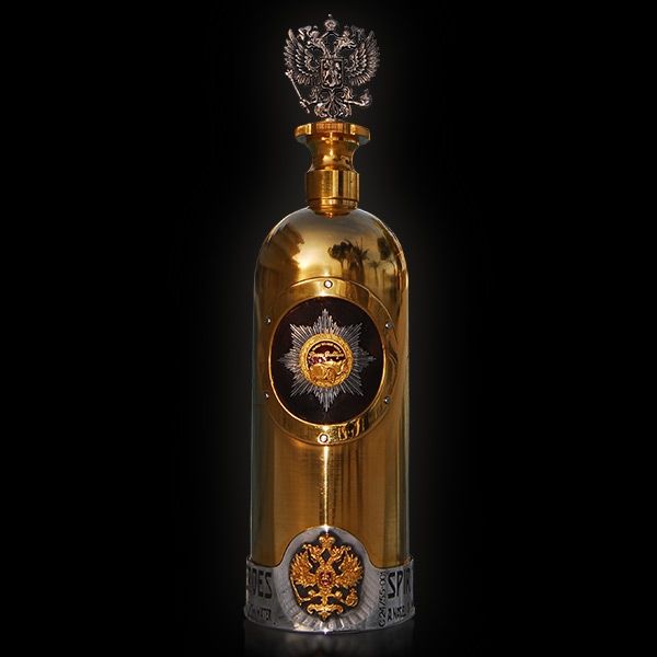Το μπουκάλι έχει κατασκευασθεί από διάφορα είδη χρυσού και είναι τοποθετημένο σε μια δερμάτινη θήκη πάνω στην οποία υπάρχει χρυσή απεικόνιση του αυτοκινήτου αγώνων «Ρουσό-Μπαλτ». Το καπάκι του μπουκαλιού φέρει το έμβλημα της Ρωσικής Αυτοκρατορίας που είναι διακοσμημένο με πολύτιμους λίθους. Όπως διαβεβαιώνει η εταιρεία που παράγει το συγκεκριμένο μπουκάλι, ο ειδικός λαιμός του μπουκαλιού έχει ένα στρώμα από μπριγιάν που λειτουργούν ως φίλτρο του ποτού που περιέχει το μπουκάλι.