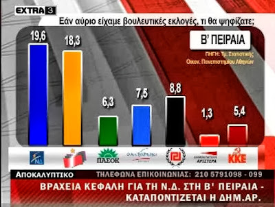 Αλλά, επειδή δεν το έχω δει να αναφέρεται αλλού και μου φαίνεται εξώφθαλμο, θα ήθελα να παρατηρήσω το εξής στην δημοσκόπηση που μεταδόθηκε από το κανάλι Extra 3, του καθηγητή του Οικονομικού Πανεπιστημίου Επαμεινώνδα Πανά: Έχει μπερδέψει τους Πειραιάδες.