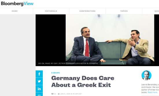 Διαβάστε παρακάτω τι γράφει ο Leonid Bershidsky στο Bloomberg σχετικά με το πως αντιμετωπίζει πραγματικά η γερμανική κυβέρνηση το ενδεχόμενο του Grexit