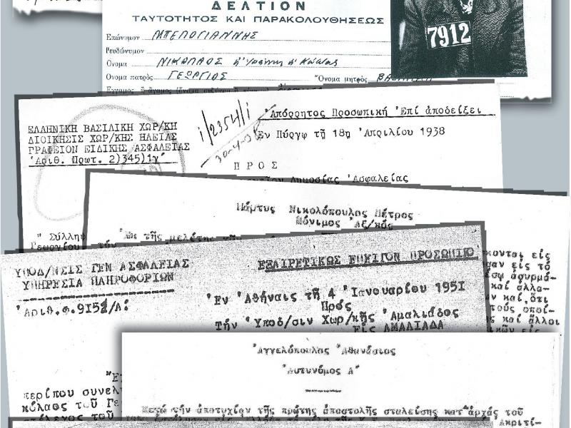 Μοναδικά ντοκουμέντα που έχουν παραχωρηθεί από το Αρχείο του ΚΚΕ στο Μουσείο «Νίκος Μπελογιάννης» παρουσιάζει σήμερα ο Ριζοσπάστης. Ένα από αυτά είναι οι καταγραφές της Ασφάλειας για τον «επικίνδυνον κομμουνιστήν»